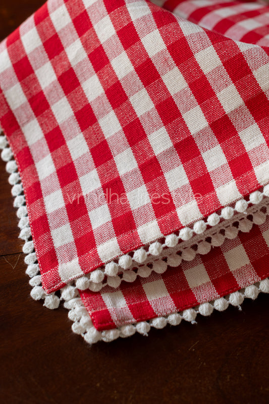 Cotton Gingham napkins with lace detailing -16 inches Set of 2