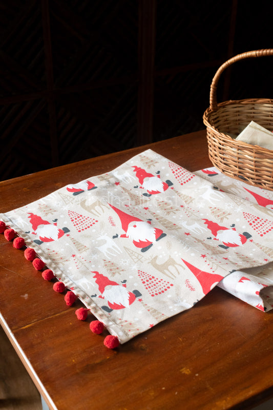 TABLE RUNNER-printed cotton with pompom-16x60 inches-4 seater