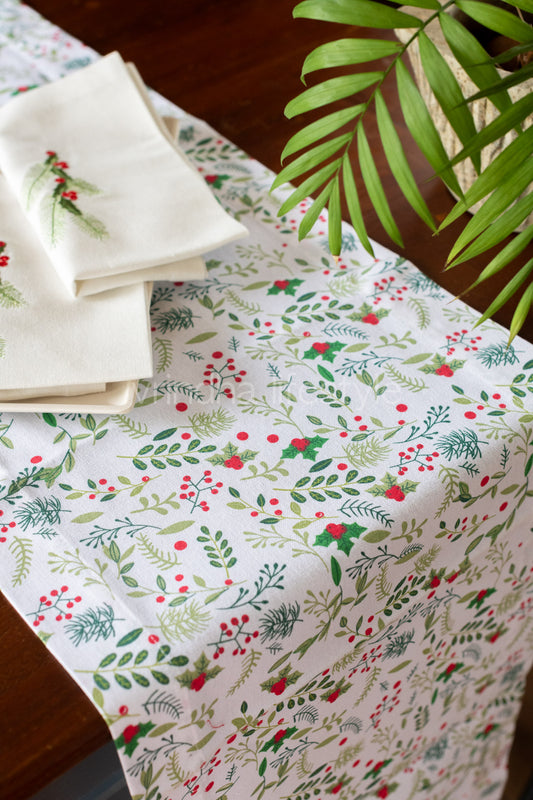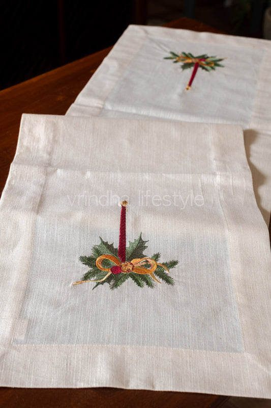 Cotton slub table runner with embroidery- 13x48 inches-4 seater -customisable