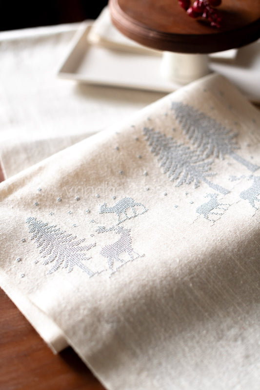 Cotton slub table runner with cross stitch embroidery- 13.5x56 inches-6 seater -customisable