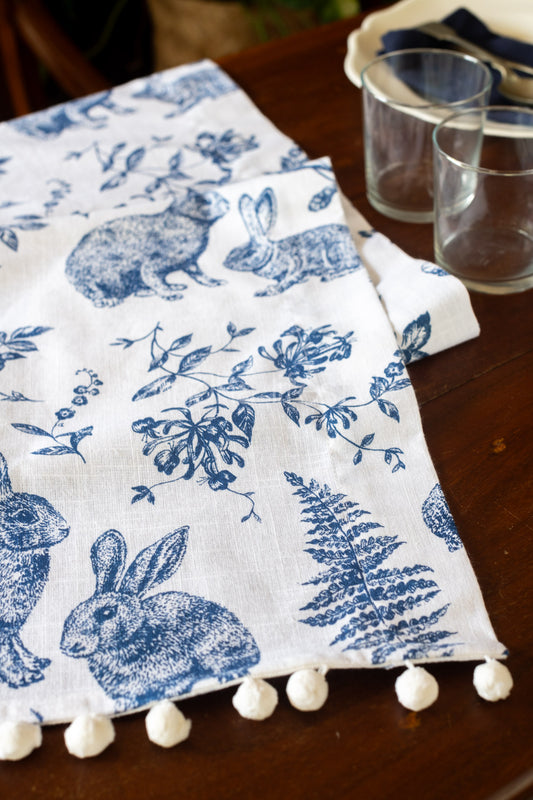 Cotton table runner with pom pom -14x59 inches