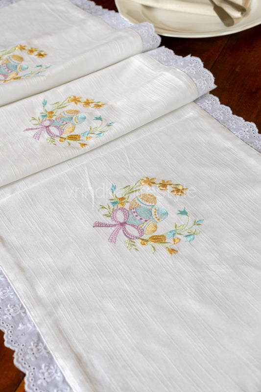 Cotton slub table runner with embroidery and lace detailing- 16x60 inches-customisable