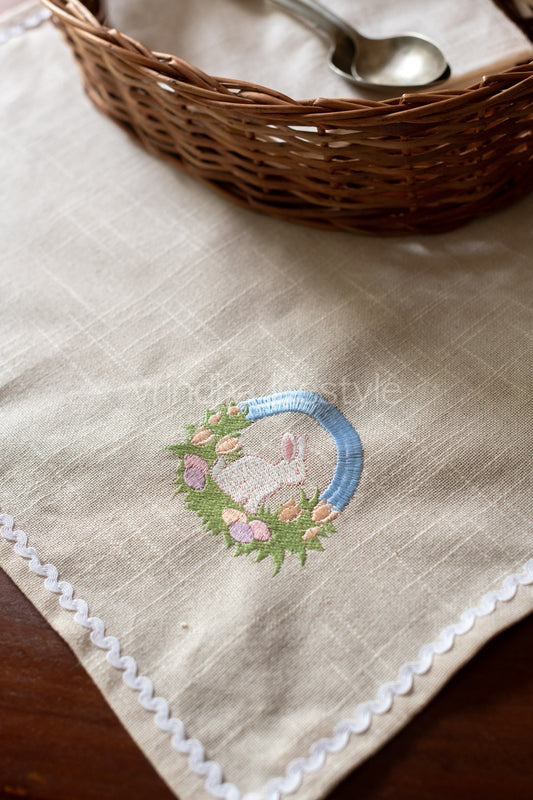 Cotton slub tray mat with embroidery and lace detailing