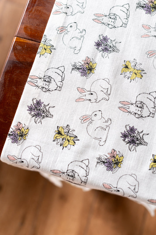 Cotton printed table cloth, with embroidery and lace detailing -4 seater