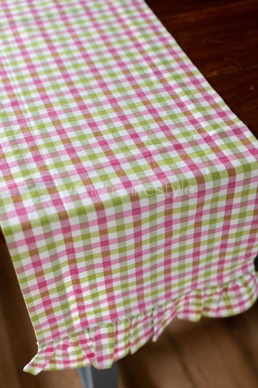 Cotton checks runner with lace detailing- 58x14 inches-6 seater -customisable