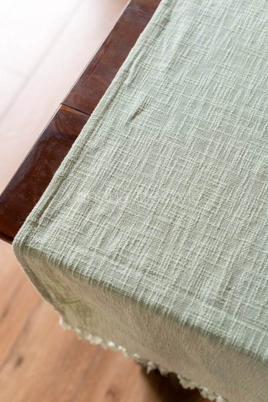 Woven checks table cloth with lace detailing -6 seater-customisable