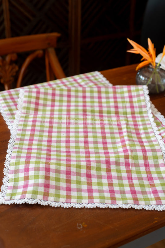 Cotton checks placemat with embroidery and lace detailing-Set of 6-customisable