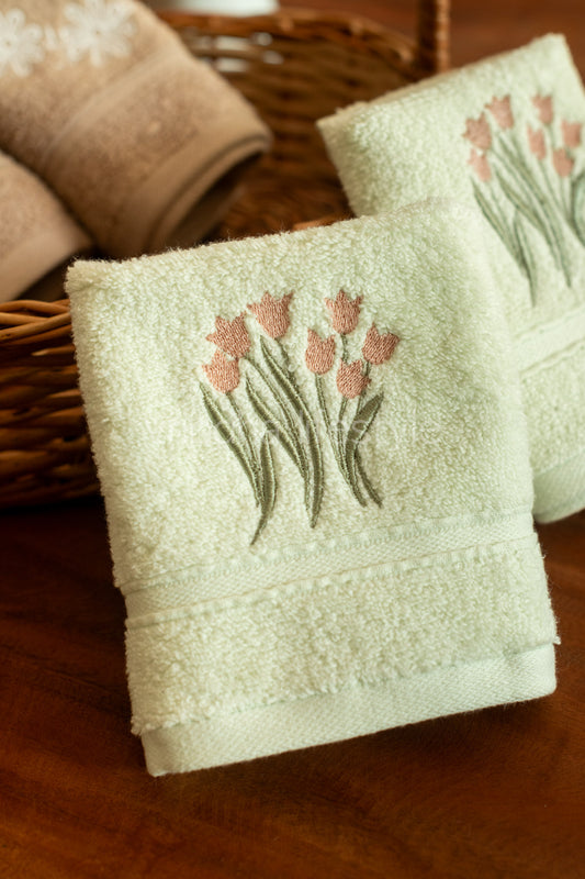 SOFT FACE TOWEL WITH HAND EMBROIDERY, 12inch x 12 inch -set of two