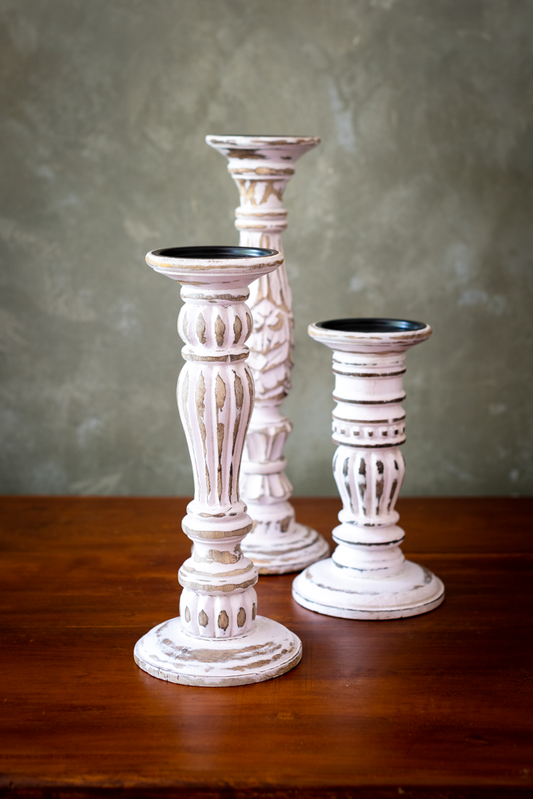 VINTAGE STYLE WOODEN CANDLE HOLDERS
