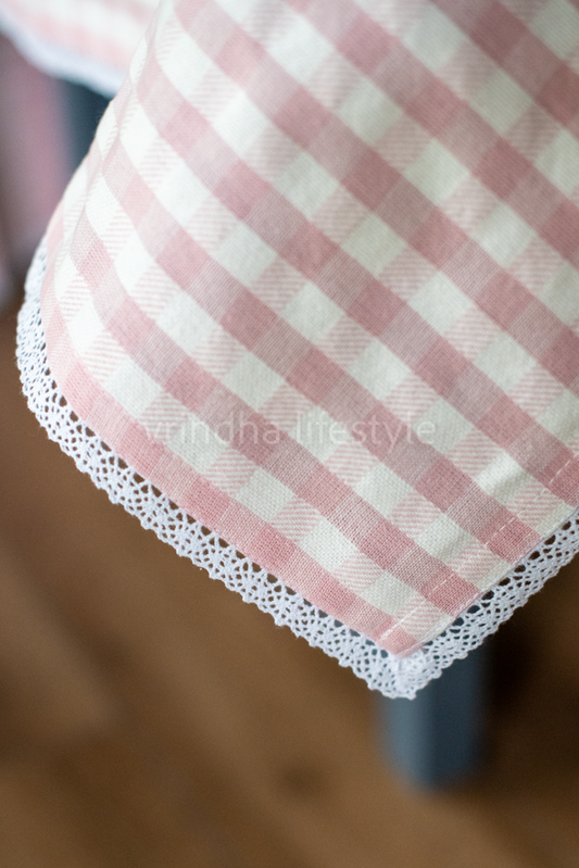 COTTON TABLE CLOTH, checks with lace detailing -6/8 seater