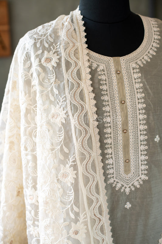 SLUB SILK SALWAR MATERIAL with organza dupatta