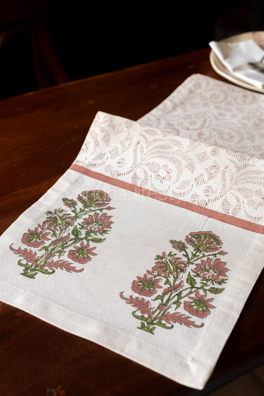 Hand block printed runner with placemats-Set of 6 placemats and one table runner