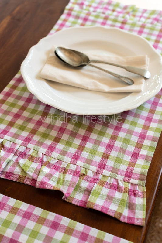 Cotton checks placemat with embroidery and lace detailing-Set of 6-customisable