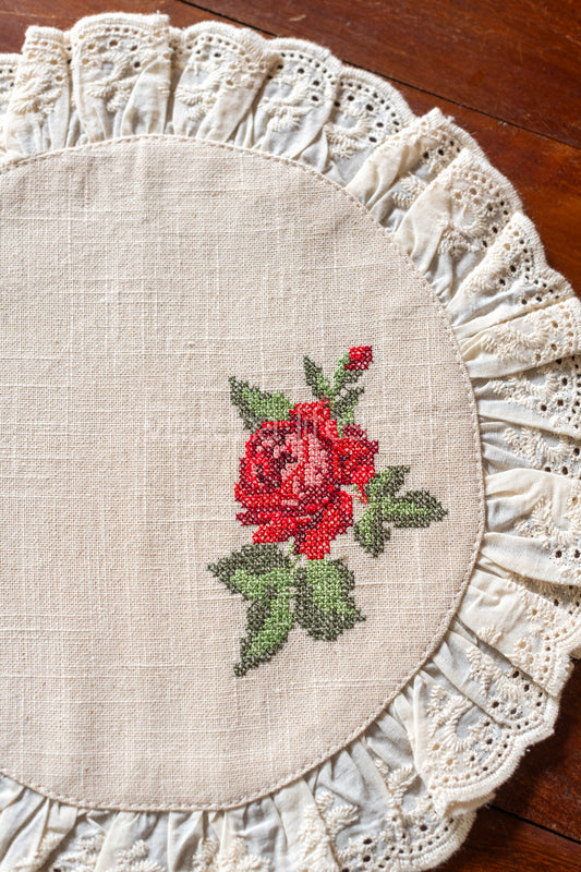 Cotton tray mat with embroidery and lace detailing- Single unit-customisable
