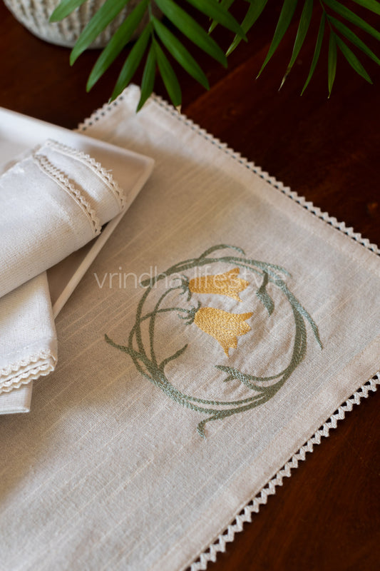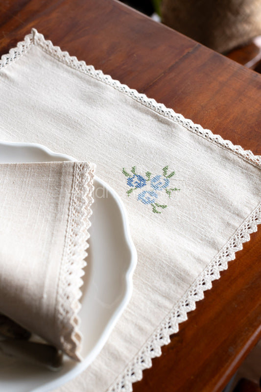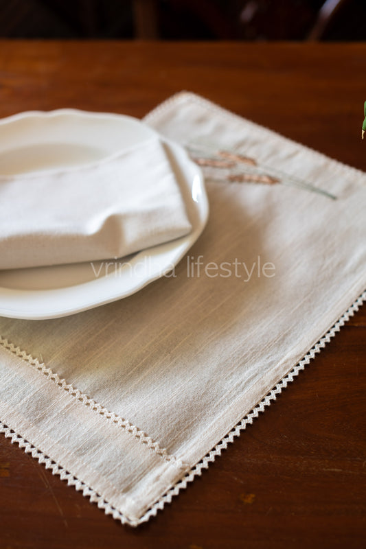 Cotton slub placemat with embroidery and lace detailing-Single unit customisable
