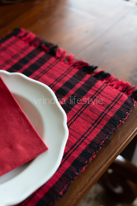 Cotton buffalo checks placemat with lace detailing-Set of 6-customisable