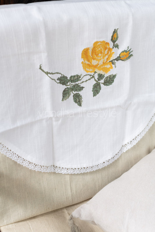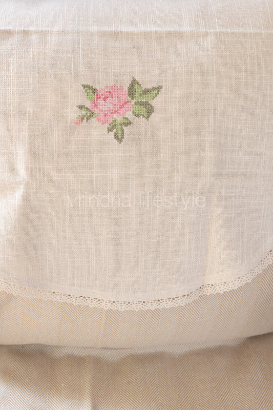 PREMIUM SOFA BACK COVER-with cross stitch embroidery and lace detailing -Single unit