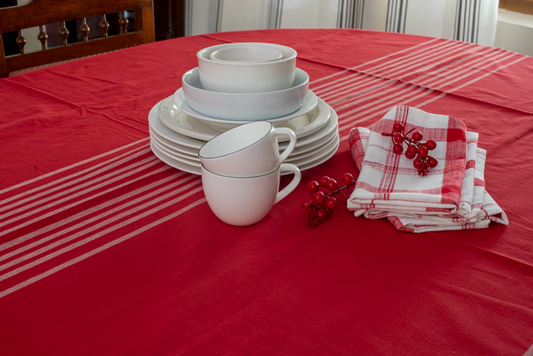 RED AND WHITE COTTON TABLE CLOTH-8 seater