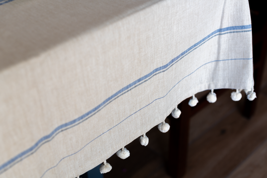 COTTON TABLE CLOTH WITH POM POM LACE DETAILING -6 seater
