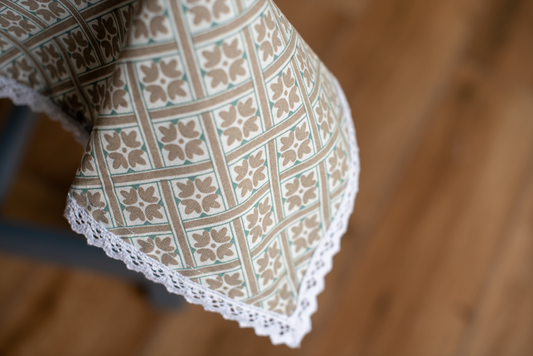 PRINTED COTTON TABLE CLOTH WITH LACE DETAILING -4 seater