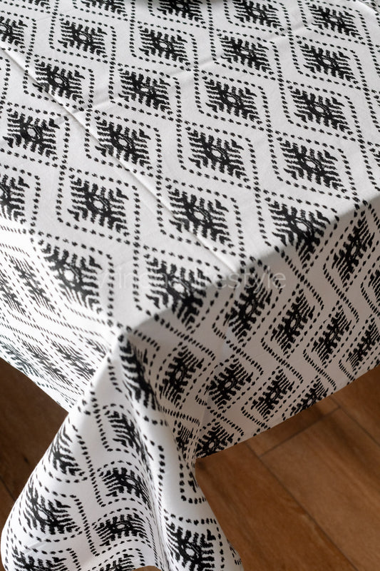 Printed cotton lurex table cloth with lace detailing -8 seater-60x100 inches