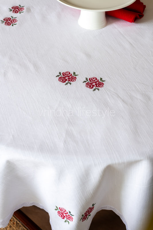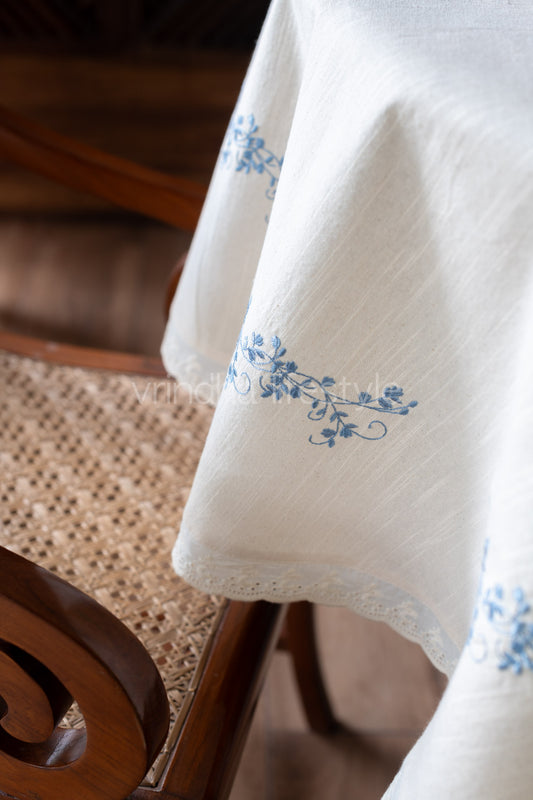 Table cloth with embroidery and lace detailing -Round-4 /6 seater