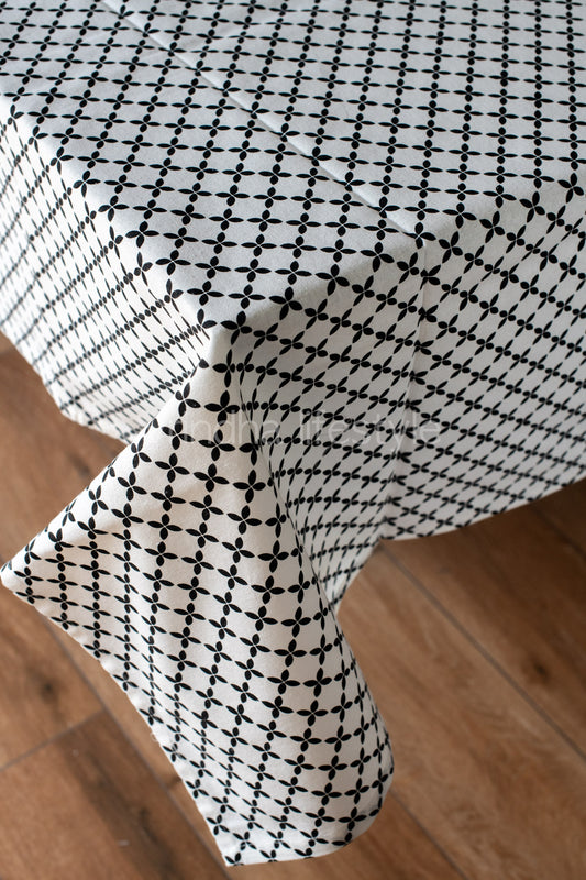 COTTON TABLE CLOTH, checks with lace detailing -6 seater-customisable