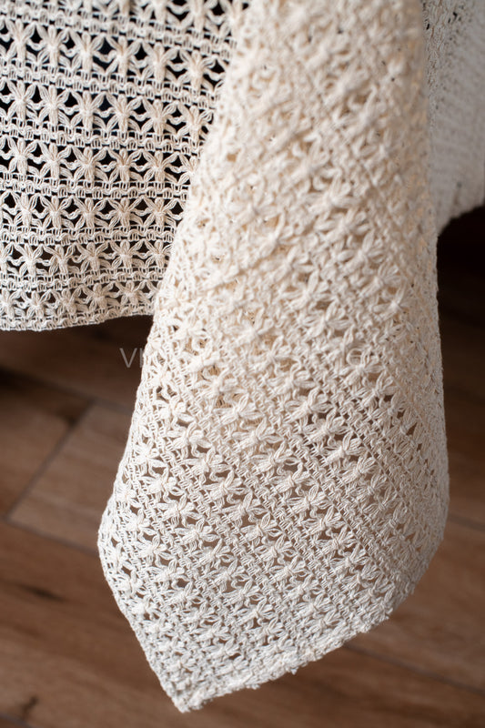 Woven cotton table cloth with lace detailing -8 seater-customisable