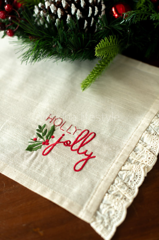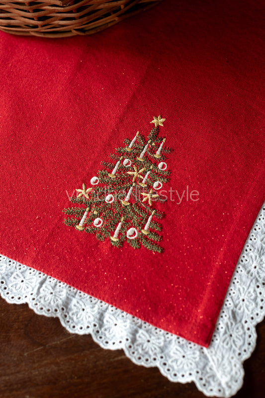Cotton slub tray mat with embroidery and lace frill detailing