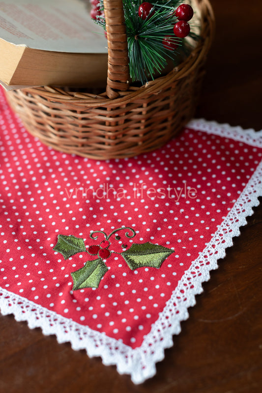 Cotton woven tray mat with embroidery and lace detailing