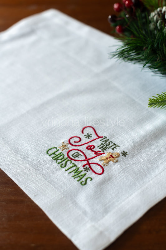 Cotton slub tray mat with embroidery and lace detailing