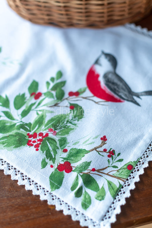 Cotton tray mat/tray cloth with lace detailing