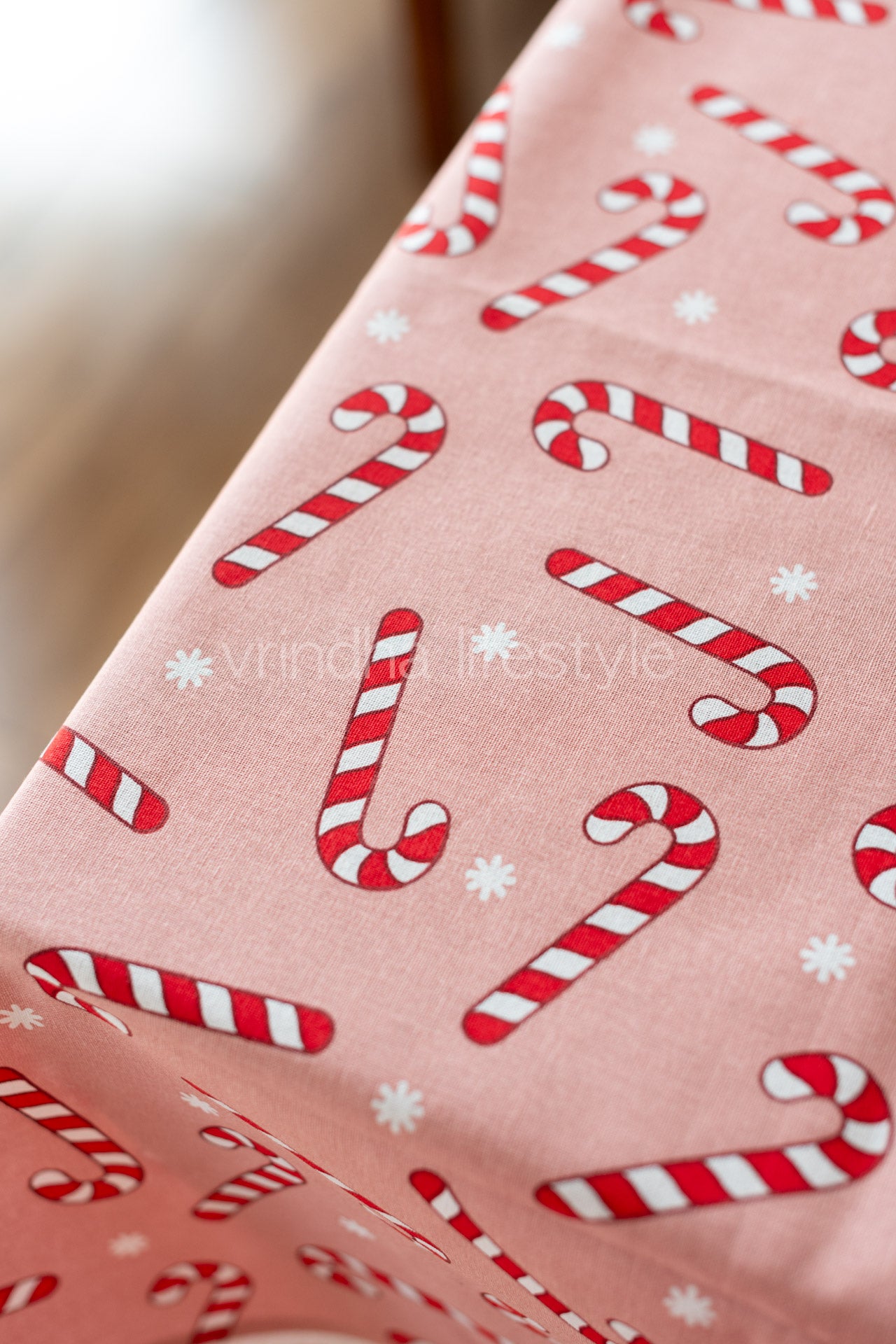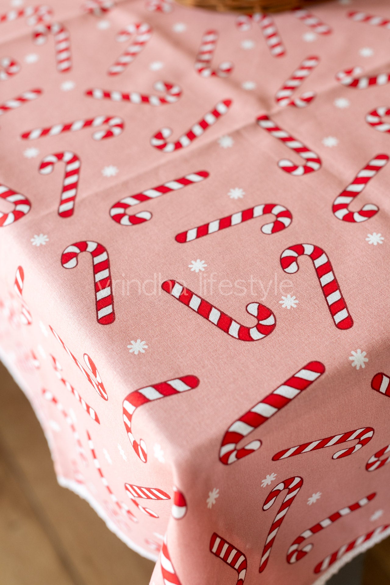 Cotton printed table cover with lace detailing-customisable