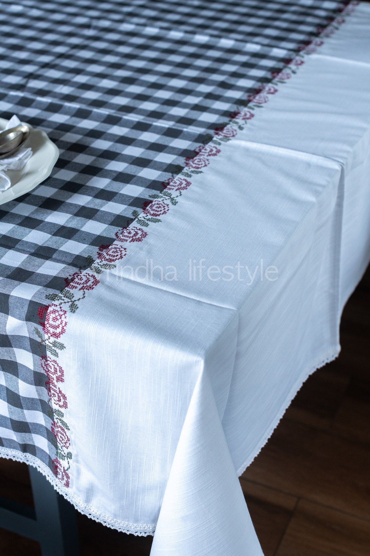 Cotton table cloth with cross stitch embroidery -58x94 inches-8 seater