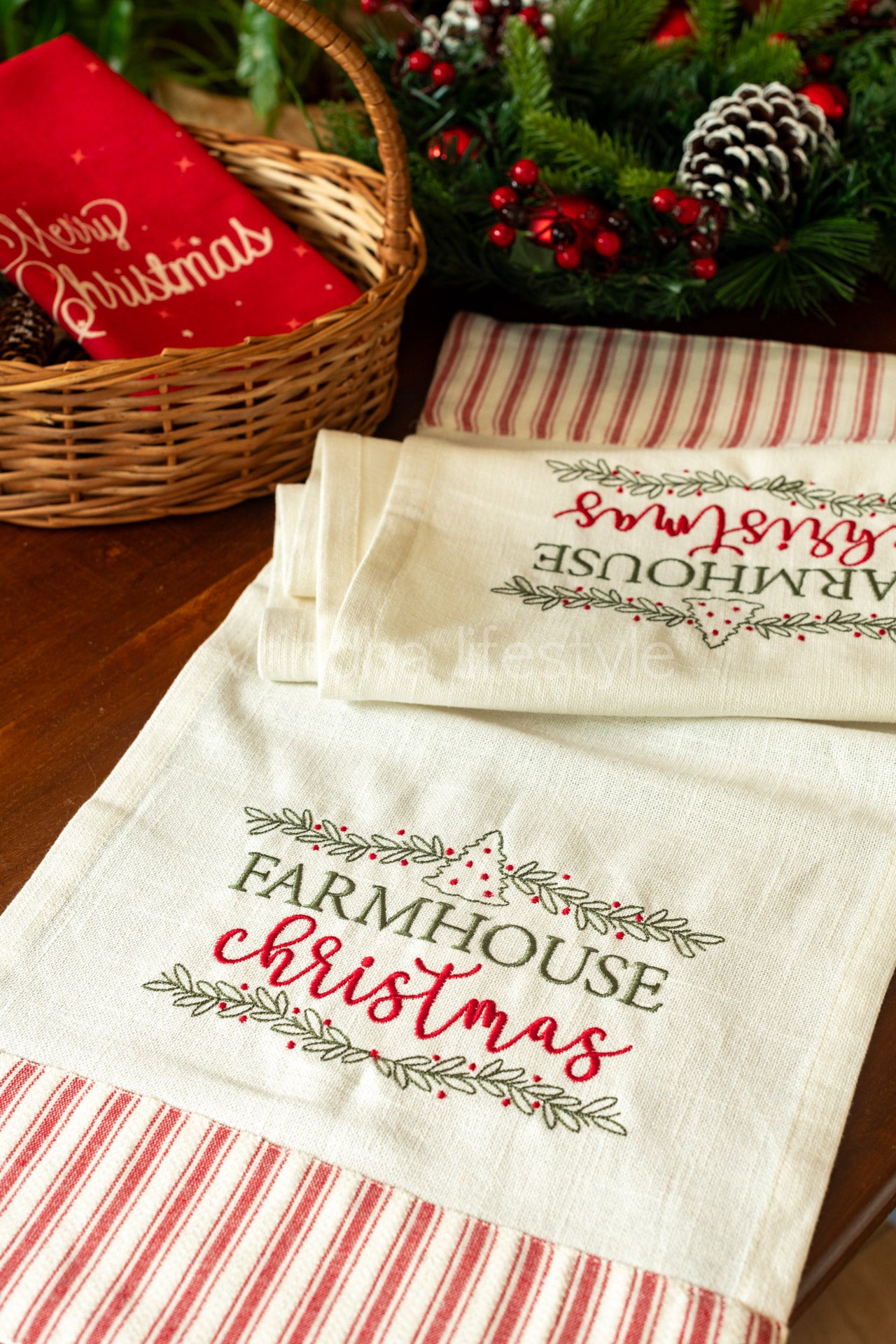 Cotton table runner with embroidery and lace detailing - 12.5x56 inches-customisable